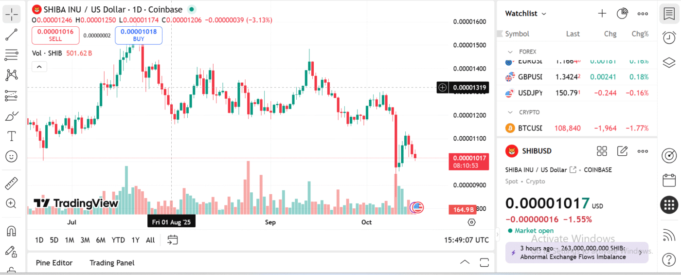Shiba Inu’s burn rate recently jumped by 222.84%, eliminating about 140 million SHIB tokens from circulation. That action underscores continuing efforts to make SHIB deflationary, but its price has not responded strongly. SHIB holders are watching whether these burns become a consistent driver or just another failed signal.
